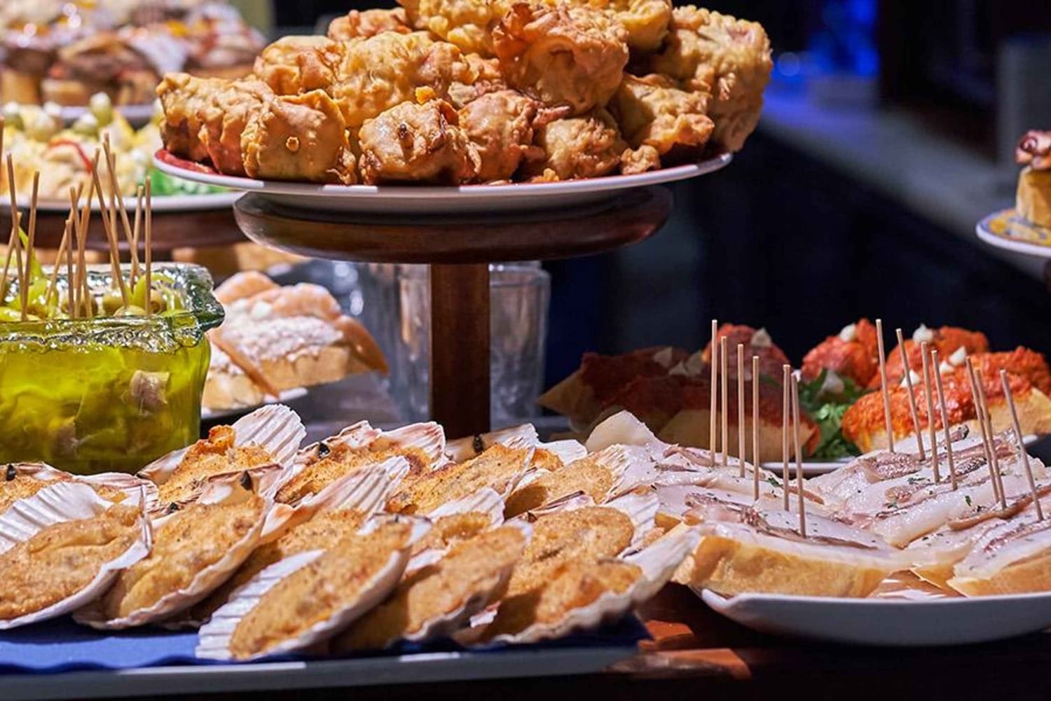 - コロッケやシーフードなど、さまざまなピンチョスをお召し上がりください
