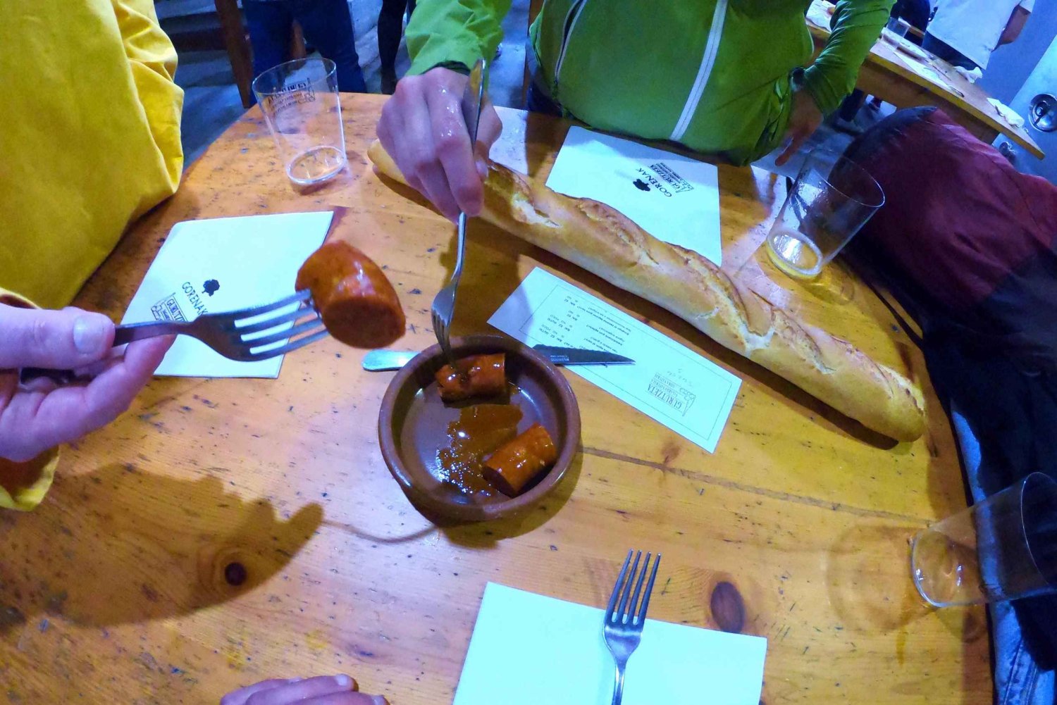 Когда мы входим в погреб, окруженный древними гигантскими дубовыми бочками, сердце фермы по производству сидра, приготовьтесь удивиться ритуалу «Тшоткс». Налейте себе сидр и насладитесь оригинальными и восхитительными блюдами, включая чоризо, омлет из трески, треску в зеленом соусе, стейк из говядины на гриле и сырное ассорти с орехами и айвой.